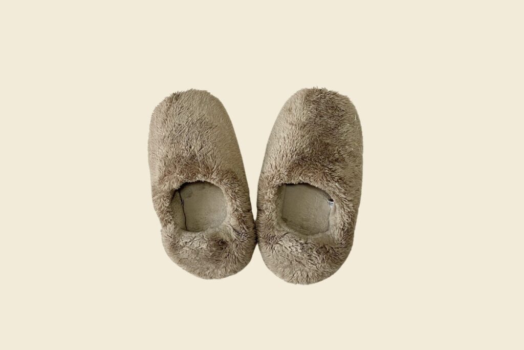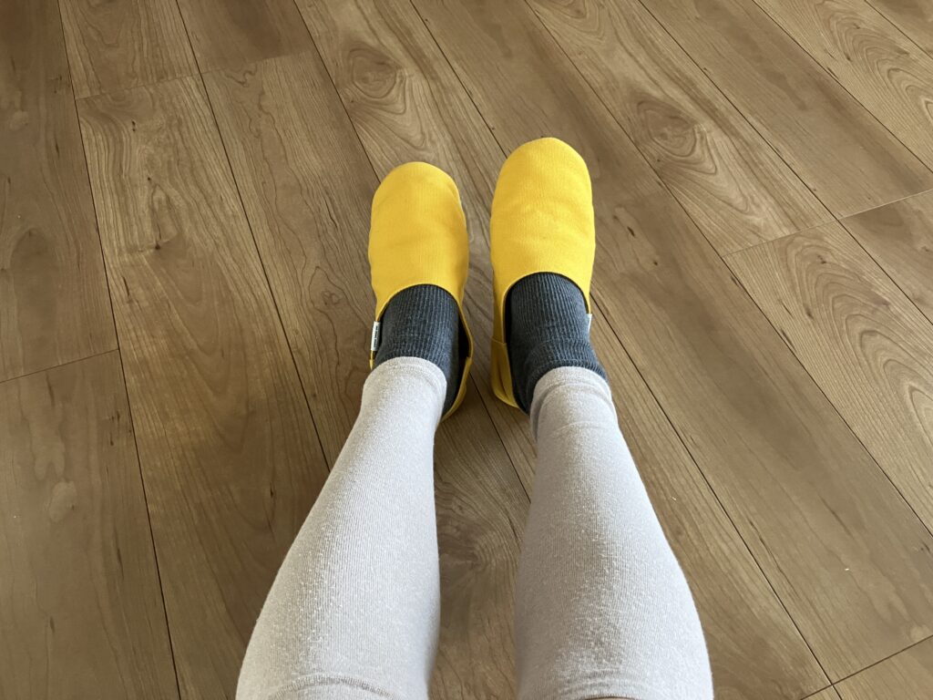 まず、ベッドから起きたら、こちらの無印のルームシューズを履いて、少しストレッチをします。