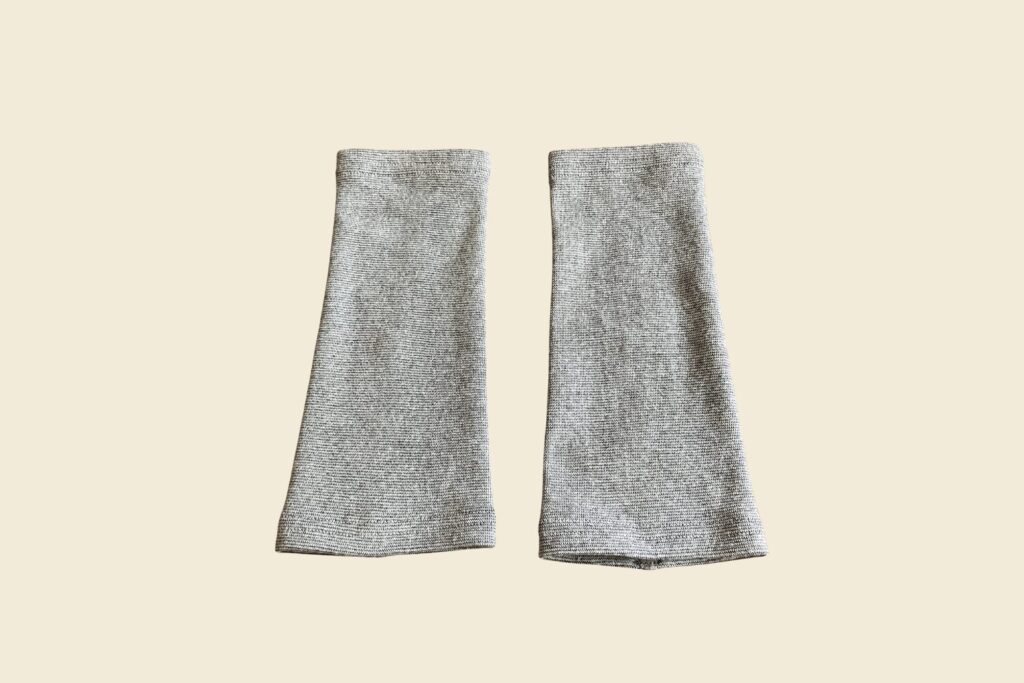 カットソーのような薄さで、シャツやブラウスの袖の中に仕込んでも目立ちません。