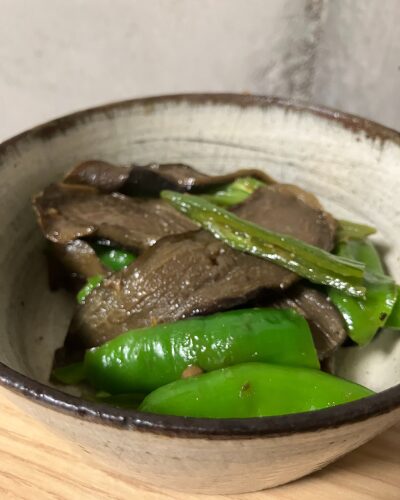 作った手順は「ナスを水で戻す⇒万願寺となすを一緒に炒めて、味噌、酒、砂糖を絡めながら炒める」です。