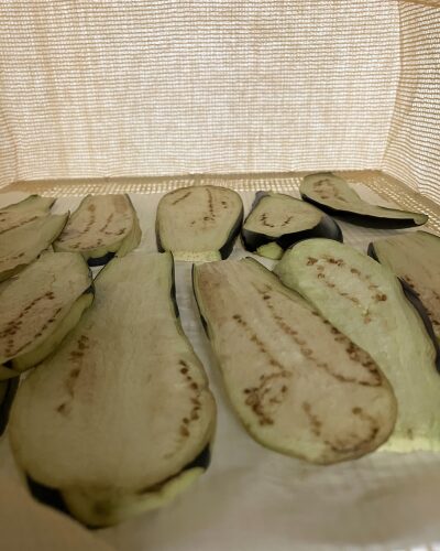 100℃でまず2時間やってみて、なすの状態を見て、1時間なり30分なり時間を追加していきます