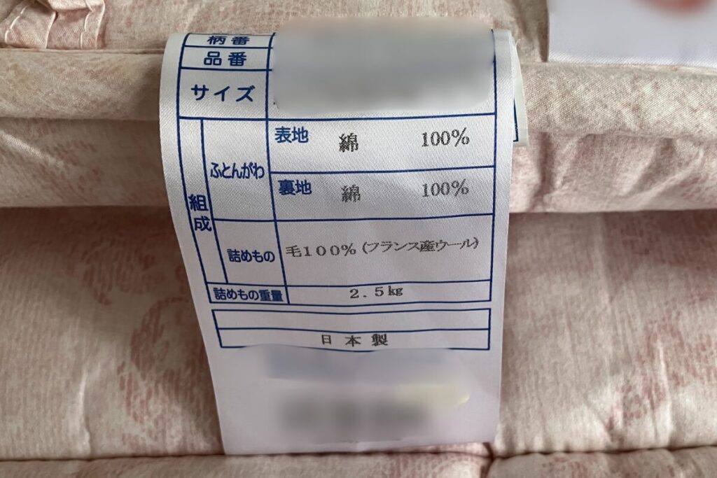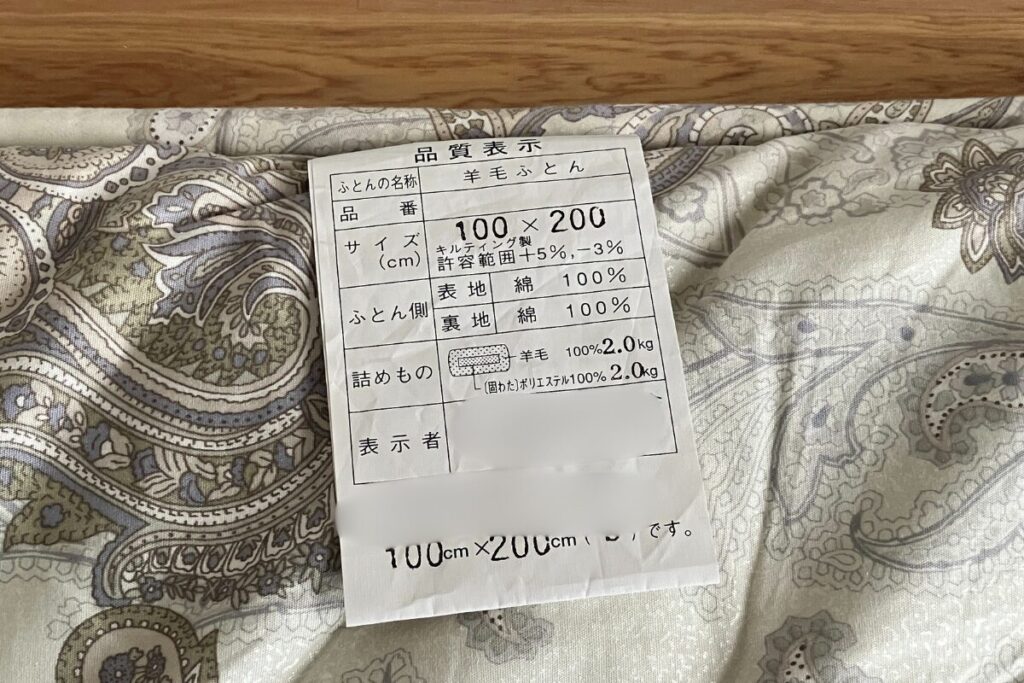 一般的なモデルは詰め物重量が4.0kg程度なので、今回購入した2.8kgモデルは1.2kgほど軽いです。