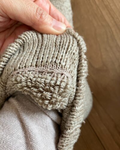 一見、なんて事のない靴下なのですが、履き口や足の甲の部分に工夫がされています。